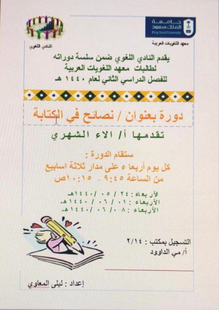 | مركز التدريب اللغوي بجامعة الملك سعود يقدم دورة تدريبية بعنوان: (الكتابة البرلمانية) | مصطفى شعبان | أخبار ومناسبات لغوية | 0 | 02-26-2019 03:08 PM |