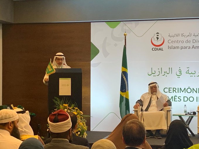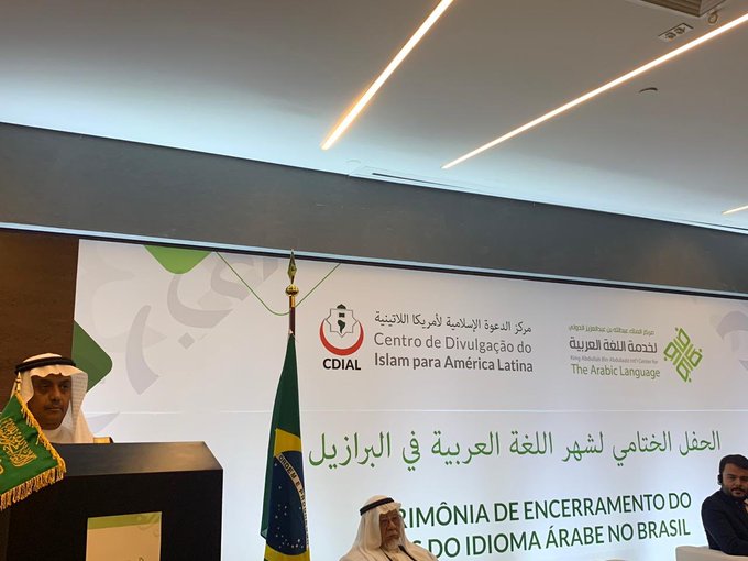 أكمل المركز استعداداته للحفل الختامي لبرنامج #شهر_اللغة_العربية_في_البرازيل ، وبدأ باستقبال ضيوف الحفل من المسؤولين البرازيليين وممثلي السفارات العربية.بدأت الفعاليات بحضور سعادة السفير السعودي وممثل الحكومة البرازيلية، وقدم الحفل الأستاذ عبدالله الحقيل ألقى سعادة الأمين العام للمركز كلمة وأشار فيها إلى أهمية الشراكات في تنفيذ برامج اللغة العربية، وأشاد بجهود السفارة السعودية ومركز الدعوة والمؤسسات المستضيفة لفعاليات الشهر. كما تحدث الأستاذ أحمد الصيفي رئيس مركز الدعوة الإسلامية لأمريكا اللاتينية في كلمته عن حاجة المجتمع البرازيلي إلى اللغة العربية وأنه يواجه مشكلات وتحديات في تعليمها، وأثنى في كلمته على جهود المملكة في خدمة الأقليات المسلمة. كما تحدث سعادة السفير علي عبد الله باهيثم سفير خادم الحرمين الشريفين في برازيليا في كلمته عن جهود المملكة العربية السعودية في خدمة اللغة العربية في الداخل والخارج، وأشاد ببرامج الشهر وفعالياته المتنوعة.رحب عضو المجلس البلدي وممثل رئيس بلدية ساوباولو رودريقو قولار في كلمته بهذه البرامج العربية، وأشار إلى أهمية التعاون مع المملكة العربية السعودية خاصة والدول العربية عامة.وكرم المركز الطلاب والطالبات الفائزين في مسابقات الإلقاء والمقالة والقصة القصيرة التي أقيمت في مدينتي ساوباولو وساوبرناردو، وعددهم اثنا عشر فائزاً. والجهات المتعاونة والمشاركة معه في تنفيذ برنامج، ويشكر المركز القنصل الإماراتي والبحريني والأردني وممثلي السفارات العربية والمسؤولين والمثقفين البرازيليين ومديري المدارس والمراكز الثقافية على حضورهم الحفل الختامي.