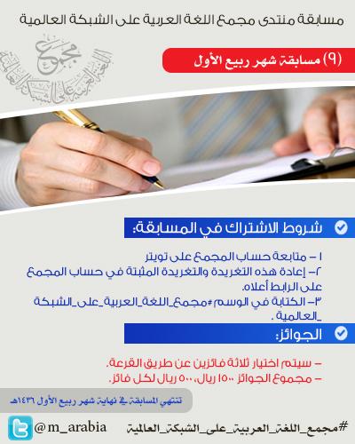 الفائزون بمسابقة منتدى مجمع اللغة العربية لشهر ربيع الأول إدارة المجمع المسابقة الشهرية 4 01-27-2015 10:21 AM
