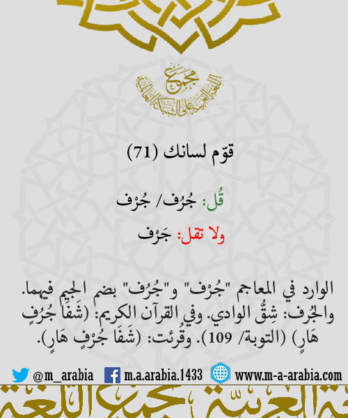 | قوّم لسانك (85) - قُل: الحِصْرِم، ولا تقل: الحُصْرُم | إدارة المجمع | الأخطاء الشائعة | 0 | 02-21-2016 11:31 AM |