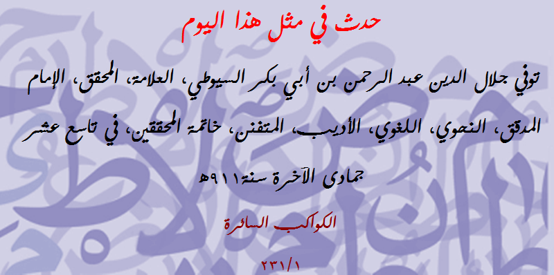 | حدث في مثل هذا اليوم (168): توفي كمال الدين بن الهُمام الفقيه الأصولي النحوي العلامة | مصطفى شعبان | مشاركات مفتوحة في علوم (( اللغة العربية )) | 0 | 05-23-2018 07:48 AM |