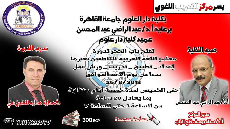 مركز التدريب اللغوي بدار العلوم القاهرة يعلن عن دورة: "معلمو اللغة العرببة للناطقين بغيرها"
