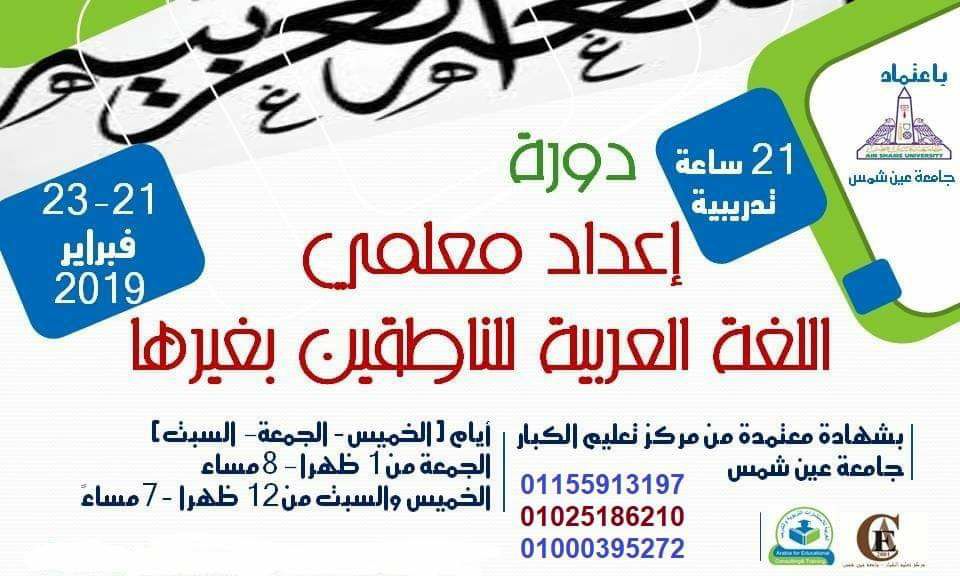 | دورة إعداد معلمي اللغة العربية للناطقين بغيرها بجامعة عين شمس | شمس | أخبار ومناسبات لغوية | 0 | 11-03-2018 11:54 PM |