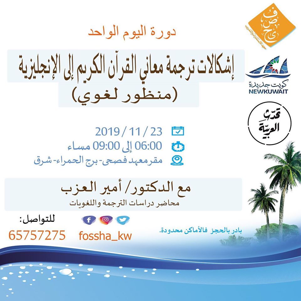 | دورة تدريبية بعنوان: "إشكالات ترجمة حروف الجر بين العربية والإنجليزية" بمركز فصحى | مصطفى شعبان | أخبار ومناسبات لغوية | 0 | 03-13-2019 01:31 PM |