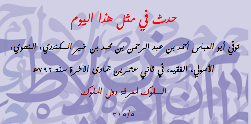 | حدث في مثل هذا اليوم (224): توفي شهاب الدين أبو العباس المحلي الفقيه النحوي المصري | مصطفى شعبان | مشاركات مفتوحة في علوم (( اللغة العربية )) | 0 | 09-08-2018 10:23 AM |