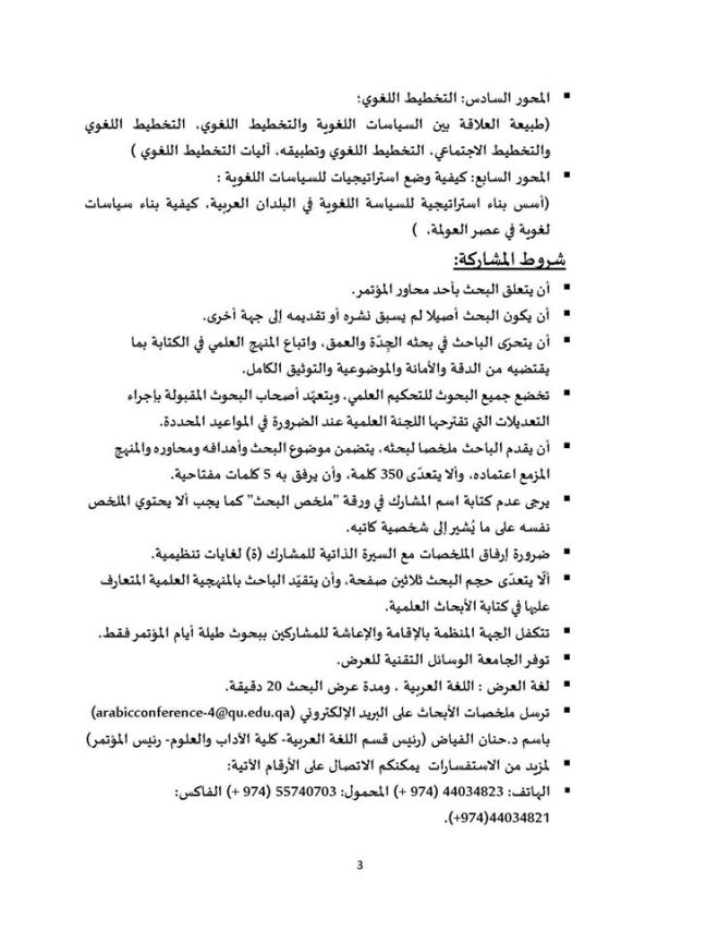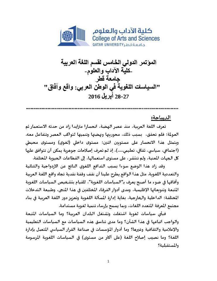 | قريبًا… الكتاب الجماعي المحكم "السياسات اللغوية في العالم العربي: الرؤى والبدائل" | شمس | أخبار ومناسبات لغوية | 0 | 10-17-2017 07:01 AM |