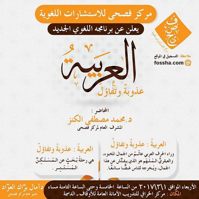 | مركز فصحى للاستشارات اللغوية يعلن عن برنامجه اللغوي الجديد: "لغتي بصمتي" | مصطفى شعبان | أخبار ومناسبات لغوية | 0 | 08-25-2018 03:40 PM |