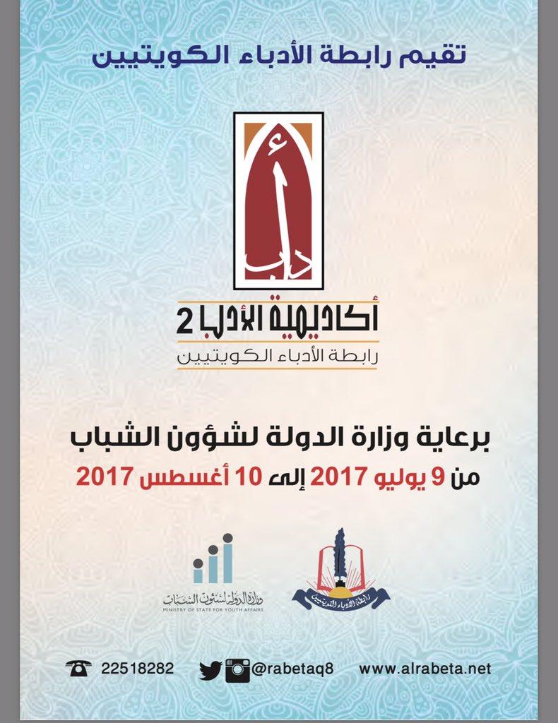 تقيم رابطة الأدباء الكويتيين النسخة الثانية من أكاديمية الأدب وذلك برعاية وزارة الدولة لشؤون الشباب من 9 يوليو ولغاية 10 أغسطس