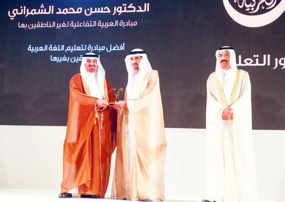 نال أستاذ اللغويات التطبيقية المشارك في جامعة الملك سعود الدكتو حسن بن محمد الشمراني جائزة الشيخ محمد بن راشد للغة العربية (محور العربية للناطقين بغيرها) نظير تقديمه المبادرة العربية التفاعلية لغير الناطقين بها التي أطلقتها جامعة الملك سعود عام 2012م تحت إشرافه لخدمة للغة العربية والراغبين في تعلمها في العالم، واستفاد منها 40 ألف شخص وأعرب مدير جامعة الملك سعود الدكتور بدران بن عبد الرحمن العمر عن سعادته بحصول مبادرة الجامعة على جائزة الشيخ محمد بن راشد آل مكتوم التي أطلقها للنهوض باللغة العربية ونشرها واستخدامها.
