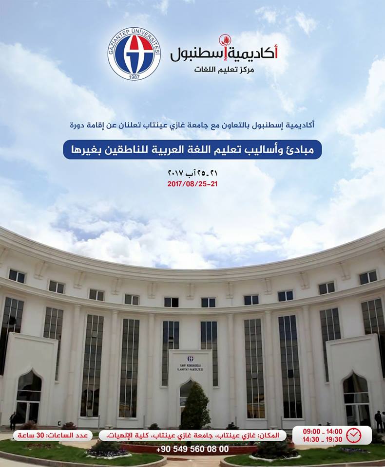 تعلن أكاديمية إسطنبول- ومركز تعليم اللغات، بالتعاون مع جامعة غازي عنتاب عن إقامة دورة "مبادئ وأساليب تعليم اللغة العربية للناطقين بغيرها"