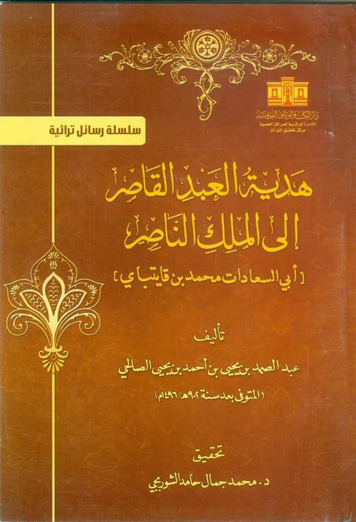 أصدرت الهيئة العامة لدار الكتب والوثائق القومية، كتاب "هدية العبد القاصر إلى الملك الناصر أبى السعادات محمد بن قايتباى من تأليف: عبد الصمد بن يحيى بن أحمد الصالح المتوفى بعد سنة 902هـ/ 1496 م، صدر الكتاب عن سلسلة رسائل تراثية الصادرة عن مركز تحقيق التراث وهو أحد المراكز العلمية المتخصصة التابعة لدار الكتب المصرية. وقد حققه الدكتور محمد جمال الشوربجى.