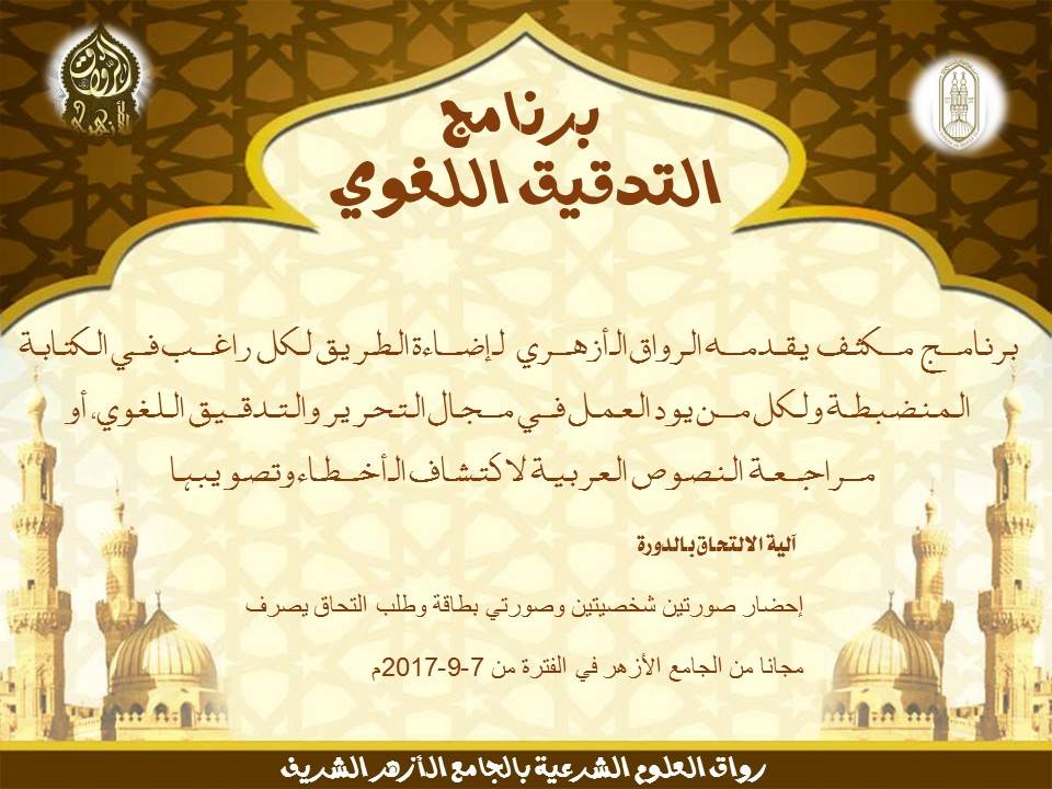 يعلن الرواق الأزهري بالجامع الأزهر عن برنامج المراجعة والتدقيق اللغوي
