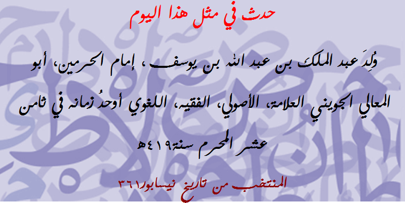 | اللغة في تراث إمام الحرمين أبي المعالي الجويني(5) | مصطفى شعبان | مشاركات مفتوحة | 0 | 03-05-2016 01:32 PM |