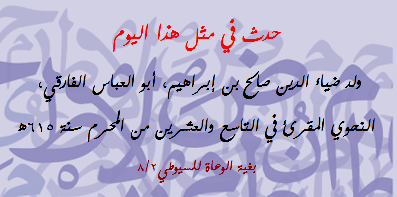 | حدث في مثل هذا اليوم (42): وفاة أبي القاسم الفارقي النحوي | مصطفى شعبان | مشاركات مفتوحة في علوم (( اللغة العربية )) | 0 | 09-24-2017 04:57 AM |
