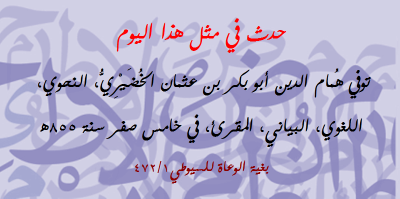 | حدث في مثل هذا اليوم (96): توفي شمس الدين الشطنوفي النحوي اللغوي المقرئ | مصطفى شعبان | مشاركات مفتوحة في علوم (( اللغة العربية )) | 0 | 12-04-2017 01:56 PM |