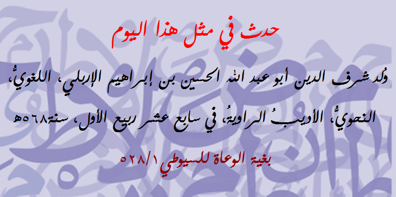 | حدث في مثل هذا اليوم (268): توفي شرف الدين الإربلي اللغوي الأديب البغدادي | مصطفى شعبان | مشاركات مفتوحة في علوم (( اللغة العربية )) | 0 | 11-25-2018 10:13 AM |