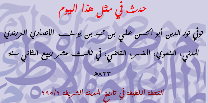 | حدث في مثل هذا اليوم (95): توفي شرف الدين المرسي النحوي اللغوي الأصولي المفسر الزاهد | مصطفى شعبان | مشاركات مفتوحة في علوم (( اللغة العربية )) | 0 | 12-03-2017 06:37 AM |