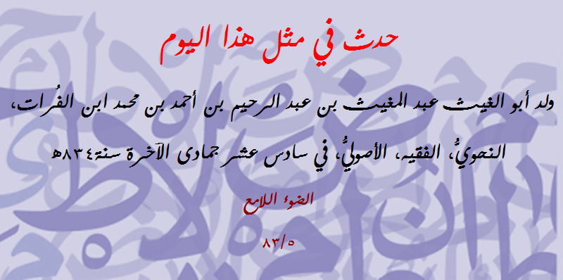 | حدث في مثل هذا اليوم (168): توفي كمال الدين بن الهُمام الفقيه الأصولي النحوي العلامة | مصطفى شعبان | مشاركات مفتوحة في علوم (( اللغة العربية )) | 0 | 05-23-2018 07:48 AM |