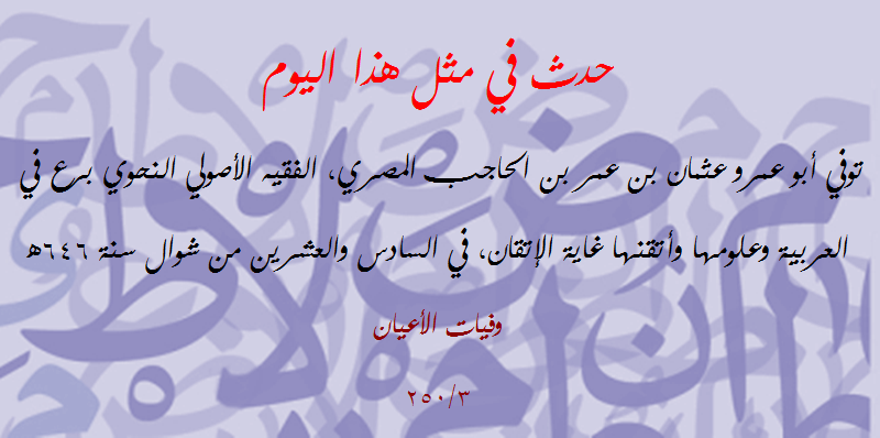 | حدث في مثل هذا اليوم (252): توفي أبو الفضائل ركن الدين الإستراباذي النحوي الأصولي | مصطفى شعبان | مشاركات مفتوحة في علوم (( اللغة العربية )) | 0 | 10-23-2018 09:47 AM |