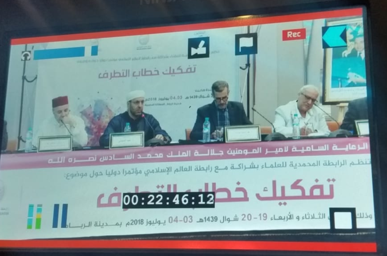 شاركَ نائب رئيس المَجمع في المؤتَمَر الدولي الذي نظمته الرابطةُ المحمديةُ للعلماء بالمغرب، بشراكَة مع رابطة العالَم الإسلامي بمكة المُكرَّمَة، والهيئة العالَمية لعُلَماء المُسلمين يومي 19-20 شوال 1439 / الموافق 03-04 يوليوز 2018، بالرباط، موضوع المؤتَمَر“تفكيك خطاب التطرف”