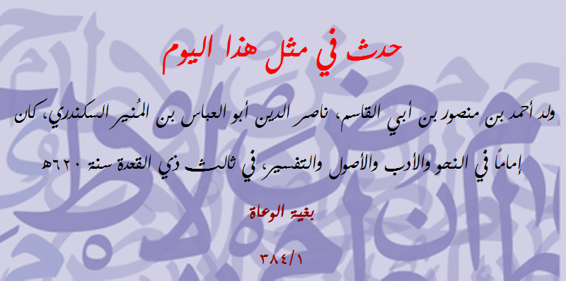 | حدث في مثل هذا اليوم (94): توفي أبو طاهر السكندري النحوي اللغوي | مصطفى شعبان | مشاركات مفتوحة في علوم (( اللغة العربية )) | 0 | 12-02-2017 07:35 AM |