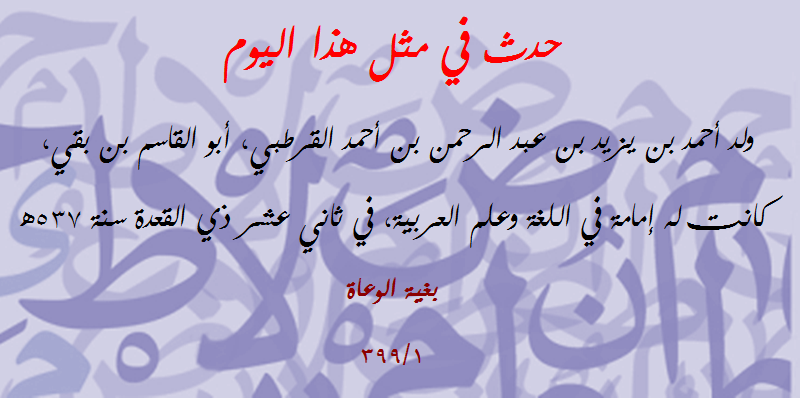| حدث في مثل هذا اليوم (21): مولد أبي محمد القرطبي المالقي النحوي اللغوي الأديب | مصطفى شعبان | مشاركات مفتوحة في علوم (( اللغة العربية )) | 0 | 08-14-2017 06:17 AM |