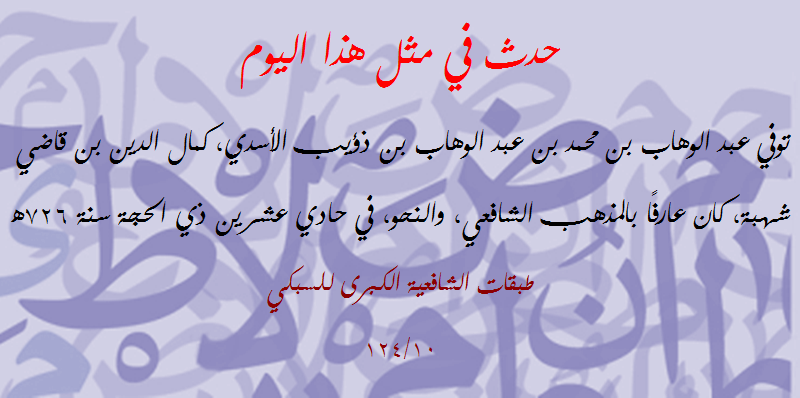 | حدث في مثل هذا اليوم (34): وفاة كمال الدين بن قاضي شهبة الفقيه النحوي | مصطفى شعبان | مشاركات مفتوحة في علوم (( اللغة العربية )) | 0 | 09-12-2017 05:33 AM |