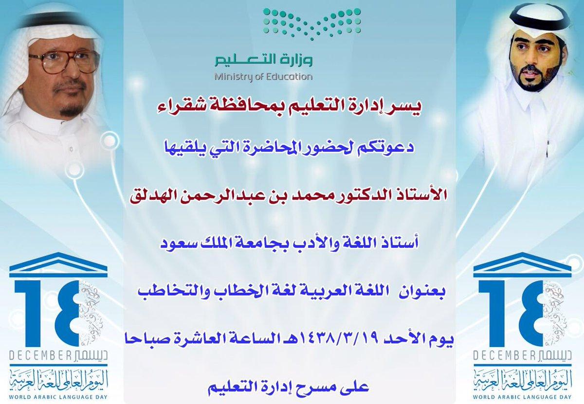 | تعليم "شقراء" تنفرد بعدم المشاركة بـ"أولمبياد اللغة العربية"..والوزارة تعلن النتائج | مصطفى شعبان | أخبار ومناسبات لغوية | 0 | 12-29-2017 06:03 AM |