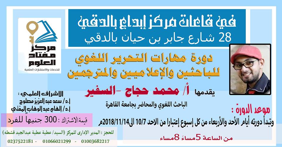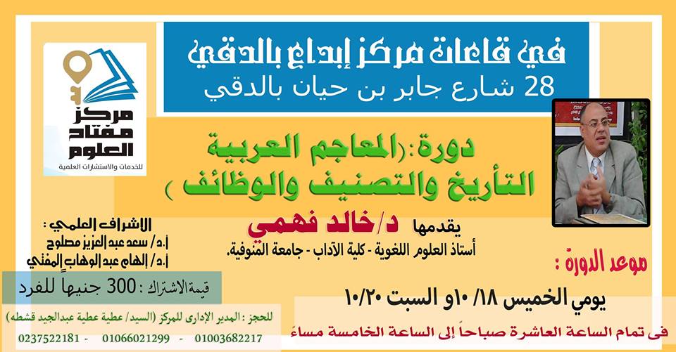 | مركز مفتاح العلوم يعلن عن دورة تدريبية نحو تأسيس معرفي في علوم العربية | مصطفى شعبان | أخبار ومناسبات لغوية | 0 | 07-07-2018 08:09 AM |