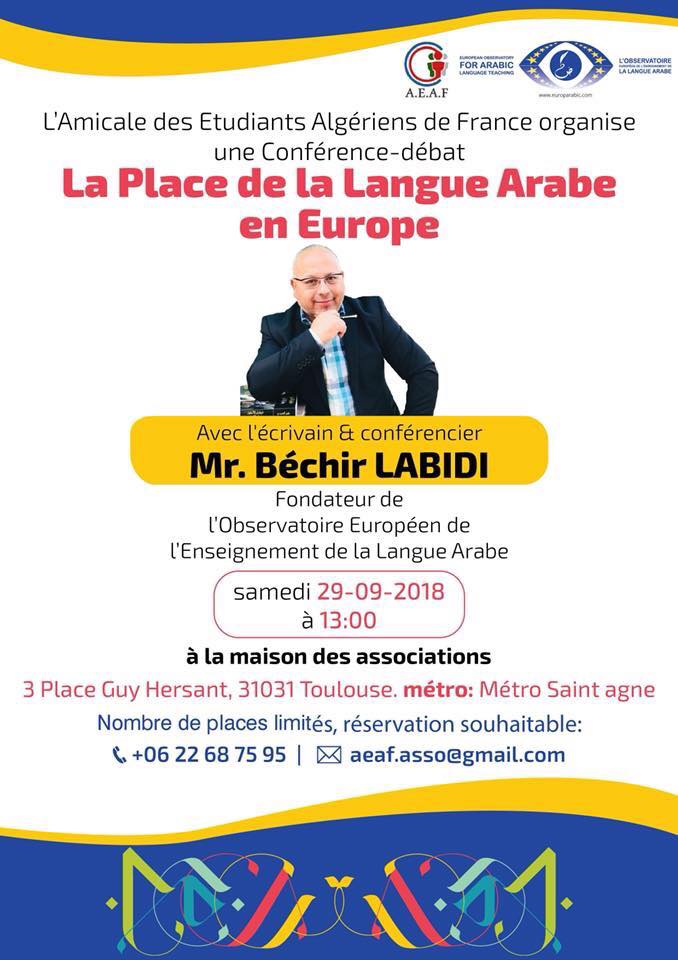 محاضرة أمام طلبة مدينة تولوز الفرنسية حول: مكانة اللغة العربية في أوروبا