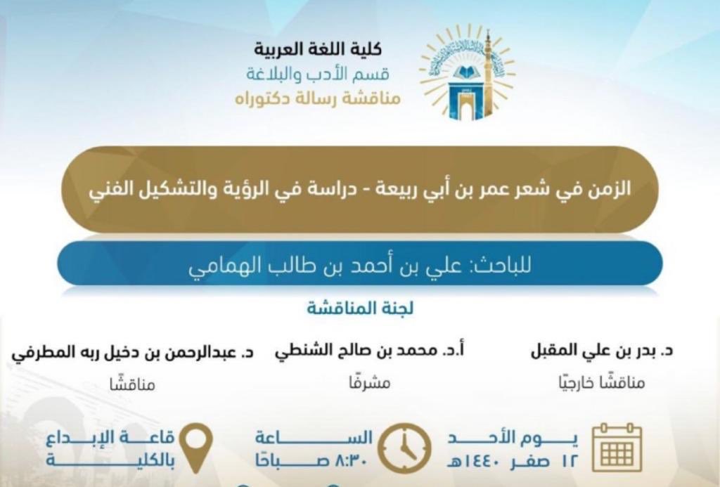 | مناقشة رسالة دكتوراه لباحث سعودي بدار العلوم : "مظاهر الحضارة في شعر العصر العباسي" | مصطفى شعبان | أخبار ومناسبات لغوية | 0 | 06-07-2018 11:21 AM |