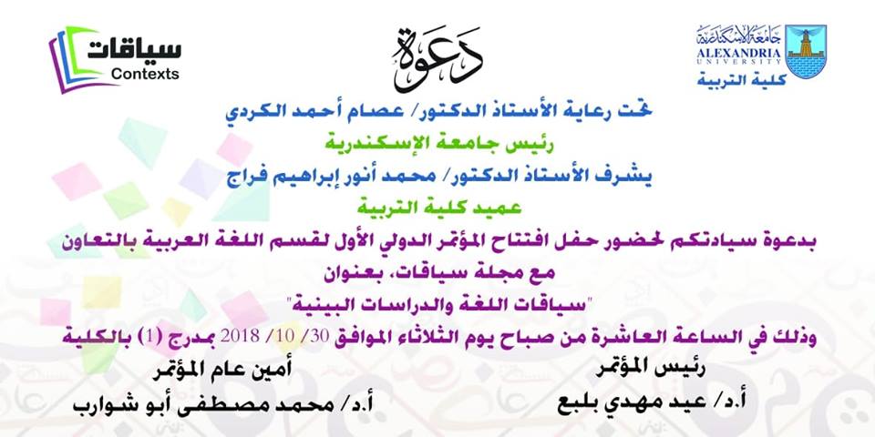 | المؤتمر العلمي الأول لقسم اللغة العربية بكلية التربية- جامعة عين شمس | أنور أحمد بدوي | أخبار ومناسبات لغوية | 1 | 10-13-2018 07:53 PM |