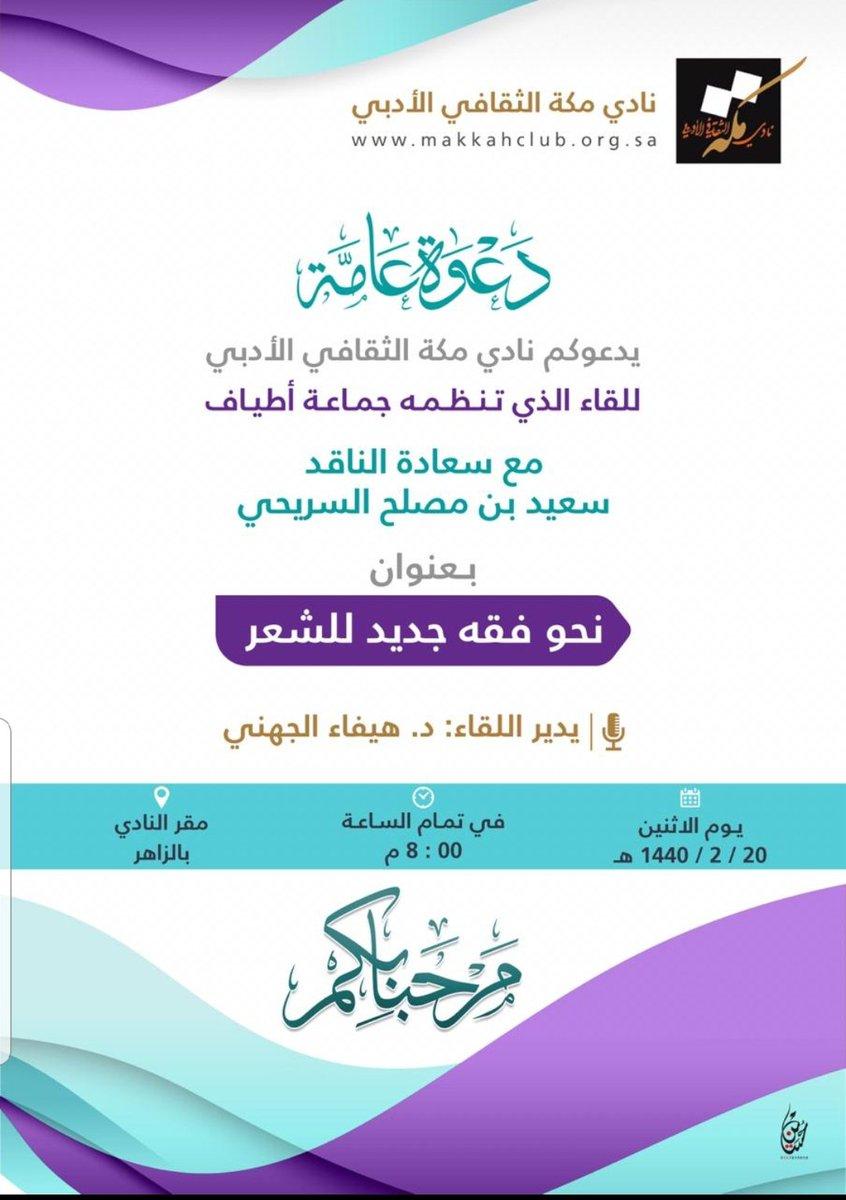 | نادي مكة الثقافي الأدبي يستضيف لقاء تنظمه جماعة فضاءات السرد | مصطفى شعبان | أخبار ومناسبات لغوية | 0 | 12-02-2018 06:42 AM |