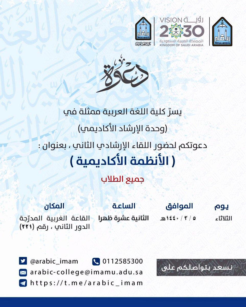 | كلية اللغة العربية بجامعة الإمام تدعو إلى اللقاء العلمي: "من أدبيات البحث العلمي" | مصطفى شعبان | أخبار ومناسبات لغوية | 0 | 11-10-2019 07:25 AM |