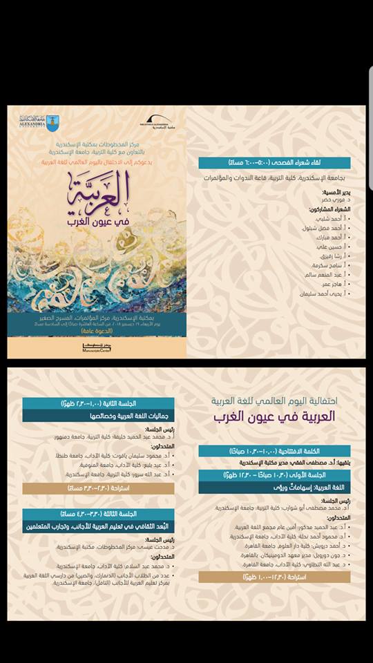 | مكتبة الإسكندرية تنظم دورة "تحقيق النصوص: قضايا ومشكلات" | مصطفى شعبان | أخبار ومناسبات لغوية | 0 | 11-10-2019 07:03 AM |