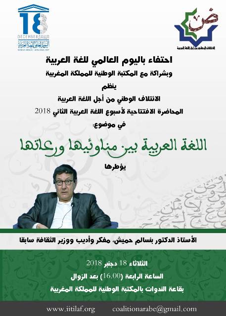 | "اللغة العربية وتدبير الاختلاف اللساني" محاضرة ينظمها الائتلاف الوطني من أجل العربية | شمس | أخبار ومناسبات لغوية | 0 | 01-10-2018 12:08 PM |