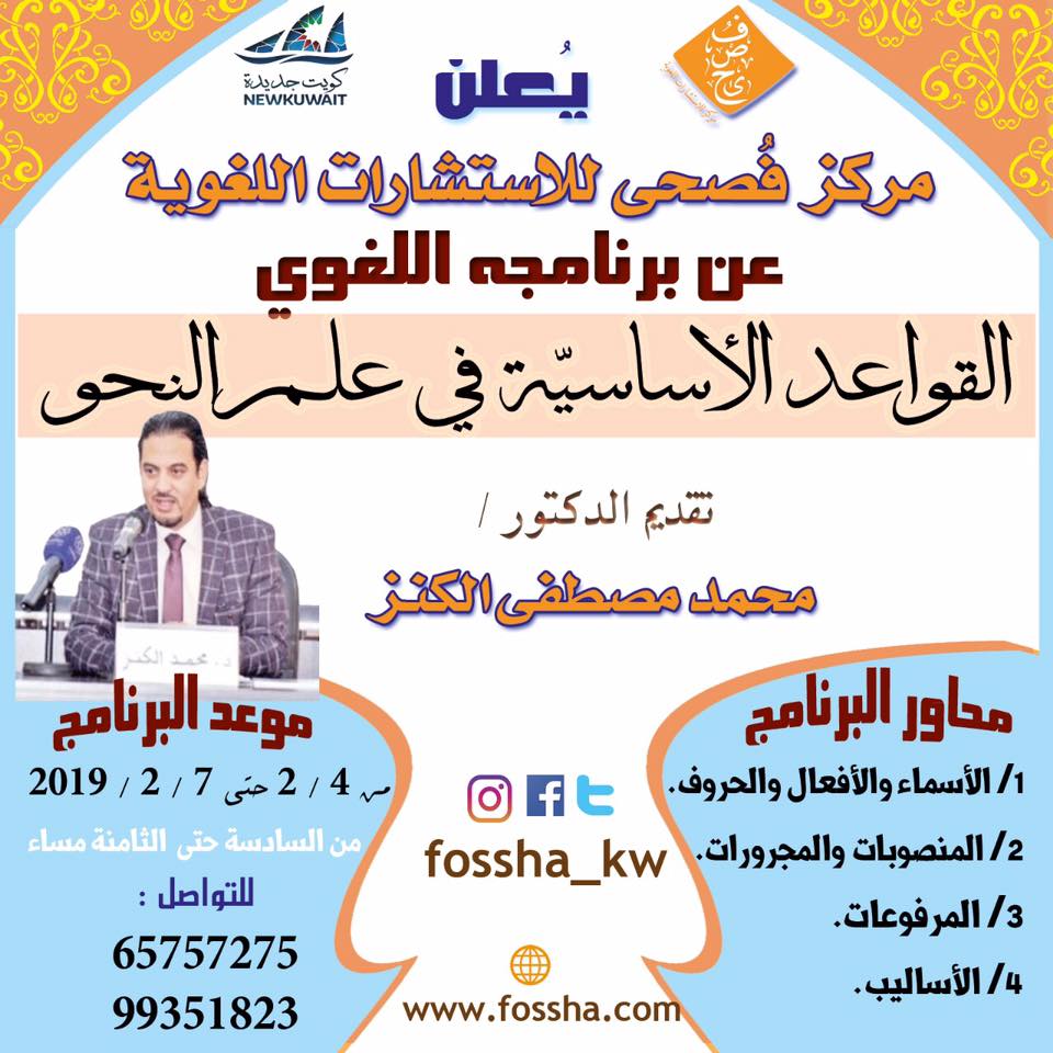 | مركز فصحى بالكويت ينظم برنامج: "القواعد الأساسية في علم الصرف" عبر الإنترنت | مصطفى شعبان | أخبار ومناسبات لغوية | 0 | 03-17-2019 07:20 AM |