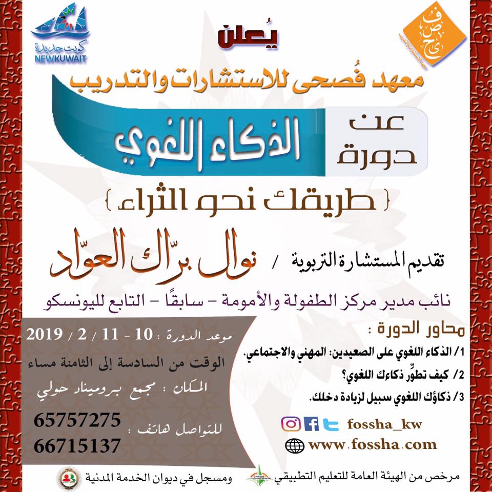 دورة بعنوان: "الذكاء اللغوي طريقك نحو الثراء" بمعهد فصحى للاستشارات والتدريب