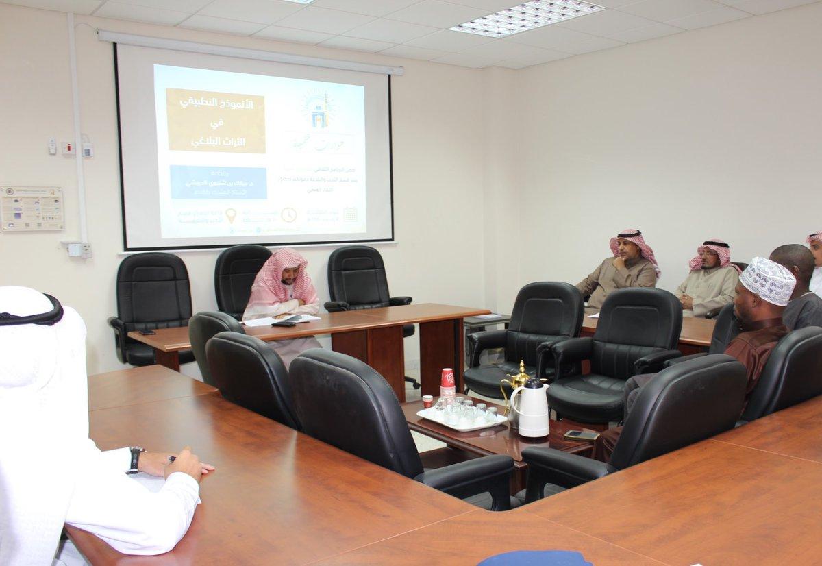 ضمن مسار حوارات علمية أقام قسم الأدب والبلاغة بـ #كلية_اللغة_العربية_ بالجامعة الإسلامية بالمدينة لقاءً علمياً للدكتور مبارك بن شتيوي الحبيشي حول (الأنموذج التطبيقي في التراث البلاغي)