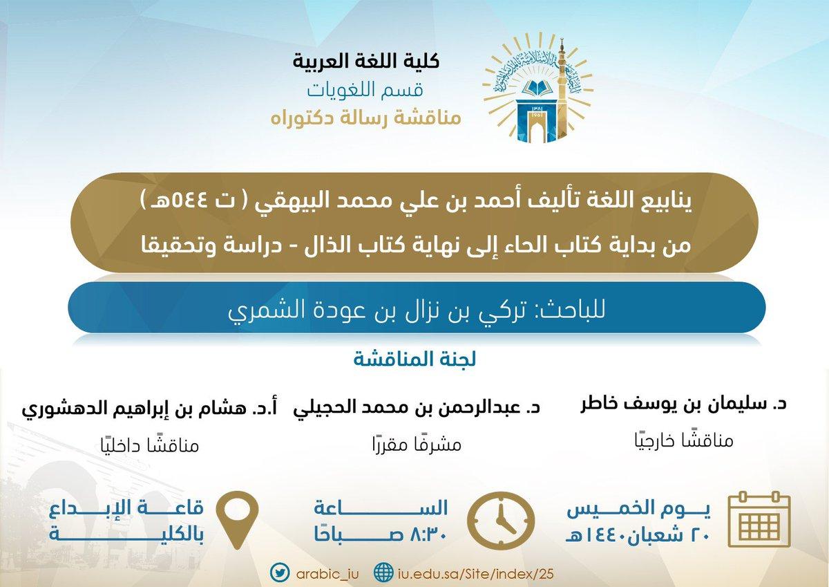| مناقشة رسالة دكتوراه: "الزمن في شعر عمر بن أبي ربيعة" بالجامعة الإسلامية | مصطفى شعبان | أخبار ومناسبات لغوية | 0 | 10-21-2018 08:33 AM |