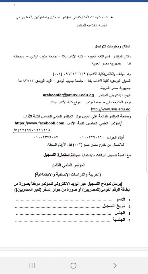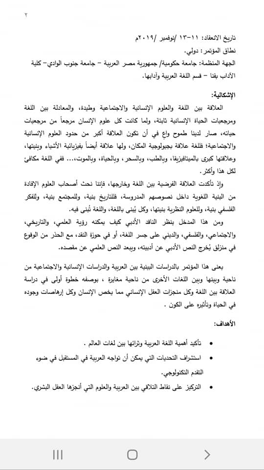 | المؤتمر العلمي الدولي الثامن العربية والدراسات الإنسانية والاجتماعية بجنوب الوادي | مصطفى شعبان | أخبار ومناسبات لغوية | 0 | 06-02-2019 10:16 AM |