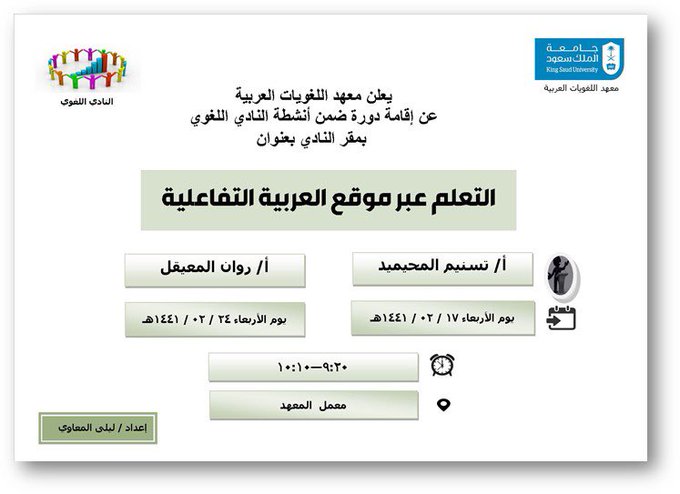 افتراضي معهد اللغويات العربية بجامعة الملك سعود ينظم محاضرة ودورات لغوية تدريبية