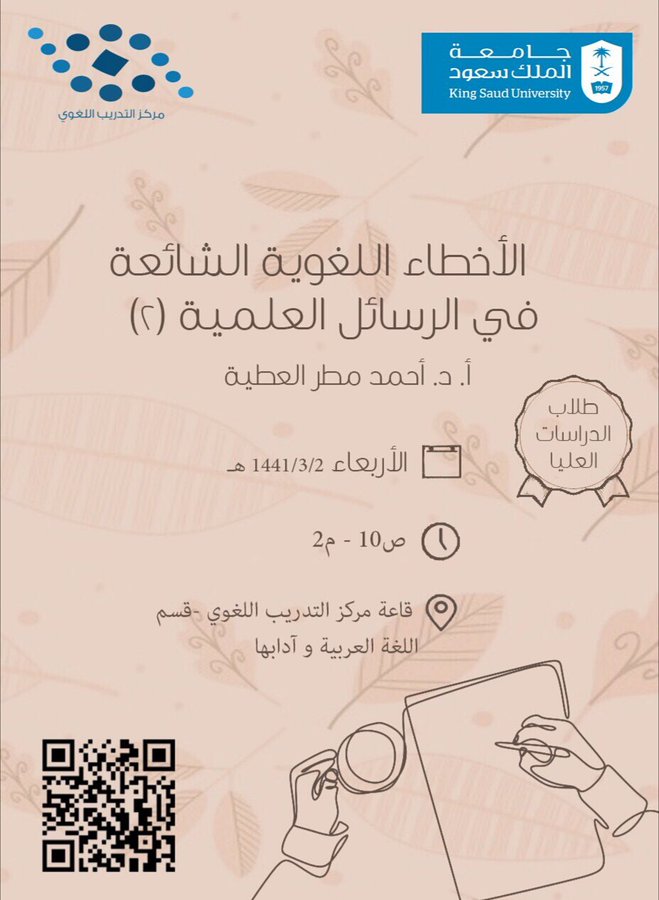 | مركز التدريب اللغوي بالملك سعود يقيم دورات تدريبية في النحو الإعراب والإملاء والكتابة | مصطفى شعبان | أخبار ومناسبات لغوية | 0 | 11-10-2019 07:35 AM |