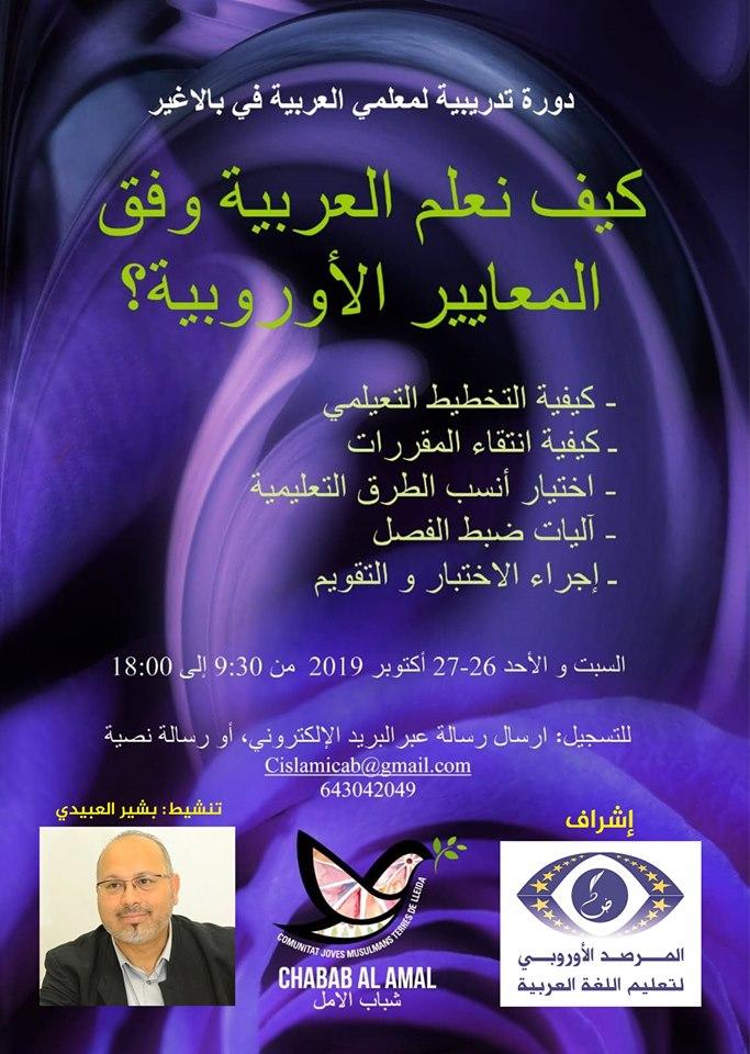 إن فريق المدرّبين في المرصد الأوروبي لتعليم اللغة العربية وجمعية شباب الأمل في برشلونة، يسعدون كثيرا بدعوة المعلّمين والمعلّمات في نواحي برشلونة، إسبانيا، لحضور الدورة التدريبية الافتتاحية للسنة الدراسية الجديدة، والتي اختار لها عنوان :