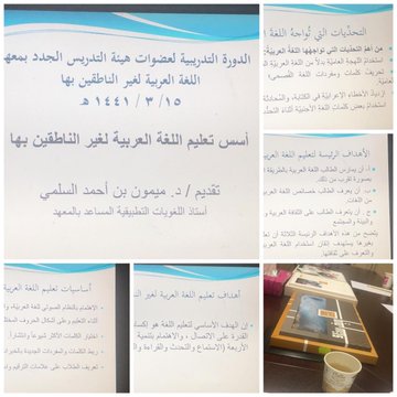 ضمن برنامج تهيئة عضوات هيئة التدريس الجديدات أقامت وكالة معهد تعليم اللغة العربية بجامعة أم القرى للشؤون التعليمية/شطر الطالبات، دورة أسس تعليم اللغة العربية لغير الناطقين بها، قدمها سعادة د.ميمون السلمي يوم الثلاثاء ١٥/ ٣/ ١٤٤١هـ