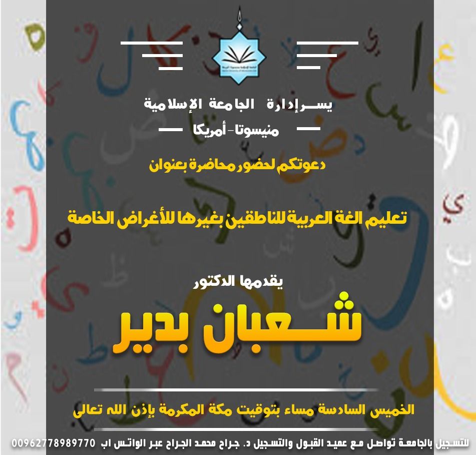 | "زايد للثقافة الإسلامية" تنظم ملتقى اللغة العربية للناطقين بغيرها غدًا | شمس | أخبار ومناسبات لغوية | 0 | 10-13-2018 09:33 PM |