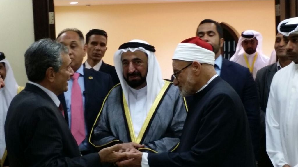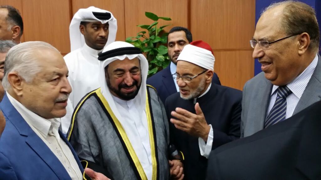 وقد تكفل سمو الأمير بتكاليف مشروع المعجم التاريخي؛ بالإضافة إلى مكرمة سموه في التبرع بالمبنى وتجهيزه. وقد ألقى الأستاذ فاروق شوشة- الأمين العام لاتحاد المجامع اللغوية العربية- كلمة رحب فيها بسمو الأمير شاكرا له مبادرته الكريمة بإنشاء مبنى مستقل لاتحاد المجامع اللغوية العربية، كما ألقى الدكتور حسن الشافعي- رئيس اتحاد المجامع اللغوية العربية- كلمة أشاد فيها بمآثر سمو الأمير؛ فهو حاكم عادل، وباحث متمرس، ومنفق جواد، ثم تقدم الشافعي بدرع اتحاد المجامع هدية تذكارية لسمو الأمير ، ثم تحدث الضيف الكريم الشيخ القاسمي معبرا عن سعادته بانتهاء التجهيزات الفنية لمبنى الاتحاد الجديد، واستحث همم المجمعيين في مصر والأقطار العربية نحو سرعة إنجاز المعجم التاريخي للغة العربية.