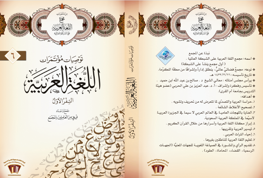 قريبًا بإذن الله يُصدر مجمع اللغة العربية بمكة السِّفر الأول من كتاب (توصيات مؤتمرات اللغة العربية) جمع وإعداد فريق من العاملين بالمجمع.