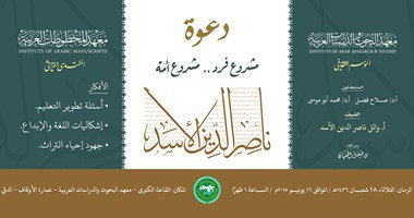 ويشارك فى الفعالية الدكتور محمد محمد أبو موسى والدكتور صلاح فضل، ويأتى خصيصًا لها من النمسا الأستاذ وائل نجل الدكتور الأسد ؛ الذى يعمل هناك رئيسًا لبعثة الجامعة العربية والمنظمات الدولية فيها. وقال الدكتور فيصل الحفيان، مدير معهد المخطوطات العربية، إن هذه الفعالية تأتى بتوجيه من معالى الدكتور عبدالله محارب المدير العام للمنظمة، تقديرًا للقامة الفكرية والعروبية الإسلامية العالية التى يمثلها الدكتور ناصر الدين الأسد والذى يُعد أحد الأعلام الكبار فى القرن العشرين، وامتد به العمر حتى ناهز التسعين عاماً، ورحل عن دنيانا فى 21 مايو 2015. وأضاف فيصل الحفيان، أن الأسد قد أثرى الحياة الفكرية والعلمية والثقافية والأدبية والعربية، وكان مشروعه هو مشروع الأمة، فقد انشغل بالأسئلة الكبرى التى تتوقف عليها النهضة ولا تقوم التنمية إلا بها، مثل أسئلة تطوير التعليم، وإشكاليات اللغة والإبداع، والعلاقة بالتراث، وكان نظره ذلك هو كله هو النظر العلمى الواعى والمتوازن الذى يقوم على الموضوعية والحيدة والدقة والاستدلال فى إطار محكم الأمانة العلمية ونبذ التعميم. وأشار “الحفيان”، إلى أن المعهدين لم يرغبا فى أن يجعلا من المناسبة تأبينًا للراحل الكبير، وذلك انسجامًا مع رؤيته الشخصية ومسيرته، لذلك كان المدخل هو تلك الأفكار التى شكلت هواجس سكنته طوال عمره المديد، وذكر أن الدعوة قد وجهت لعدد كبير من المثقفين والمتخصصين والمعنيين بالشأن الفكرى والثقافى والتراثى.