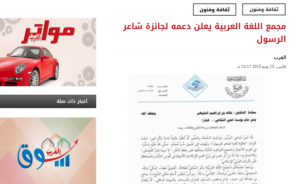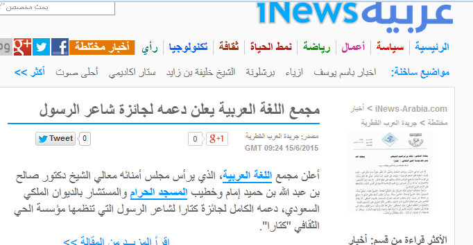 صحف دولية: مجمع اللغة العربية على الشبكة العالمية يعلن دعمه لجائزة شاعر الرسول ﷺ